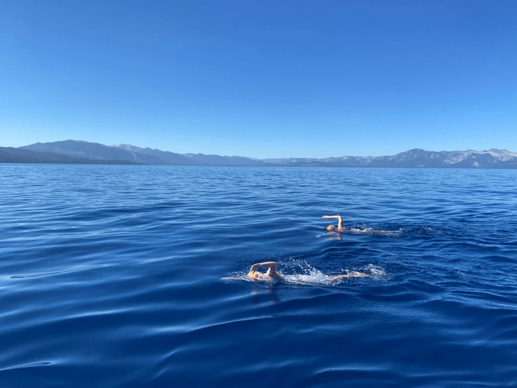 My partner and I decided to head up to the greater Lake Tahoe area 10 days before my swim so that I could acclimate to the altitude. We camped at a state park about 40 minutes south of the lake and passed the time hiking and floating in the nearby hot springs. Each day, we drove to a new swimming spot, including Donner Lake, Caples Lake, and multiple beaches on the southern portion of Lake Tahoe.