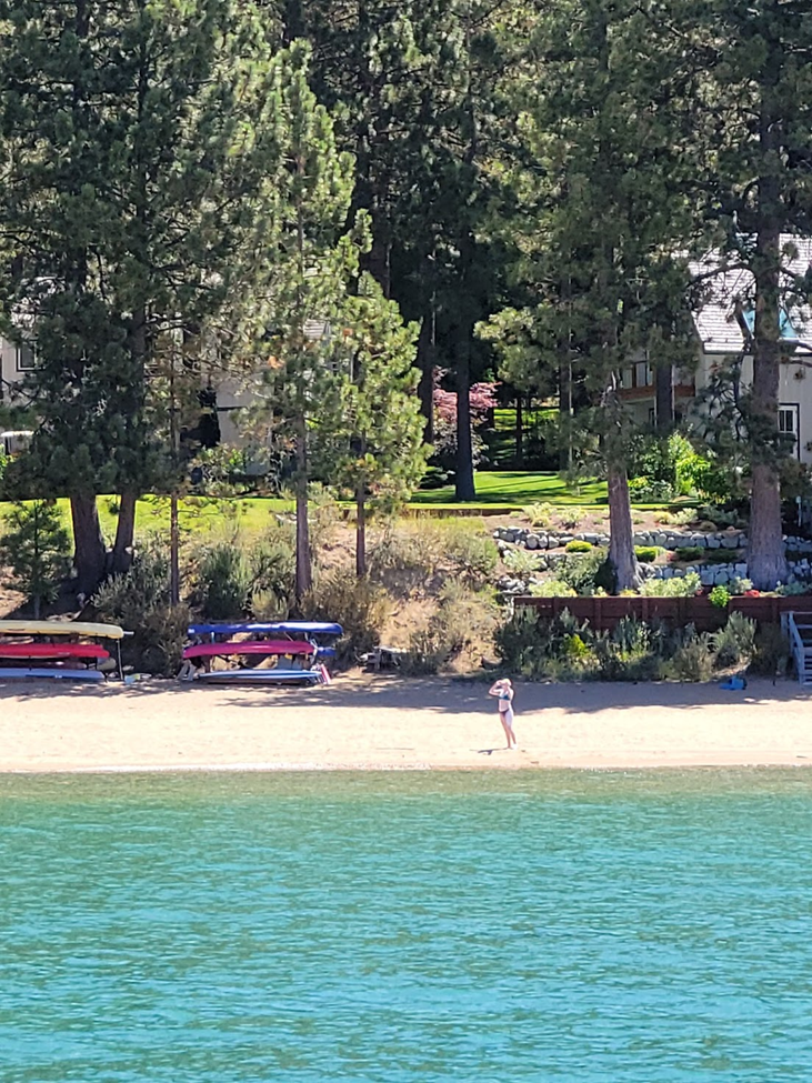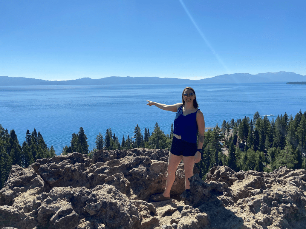 The morning after my swim, Deedee and I climbed up Eagle Rock. I had been curious about this hike our entire stay in Homewood and was looking forward to checking out the view of the lake from above. At the summit, I looked out across the lake towards Glenbrook in absolute and complete awe of what I had accomplished. HOW did I swim across that lake?! I seriously could not believe that it was possible for me to swim that far and feel as great as I did the day after. We met two women on the short hike who commented on it being amazing that I was hiking in sandals, to which I replied, “If you think that’s something, I swam across that lake yesterday!” They were so surprised and one of them told me I was her hero. After they walked away, we had the whole area to ourselves. I sat in silence at the top of Eagle Rock with immense gratitude for everyone who had supported me in this goal.