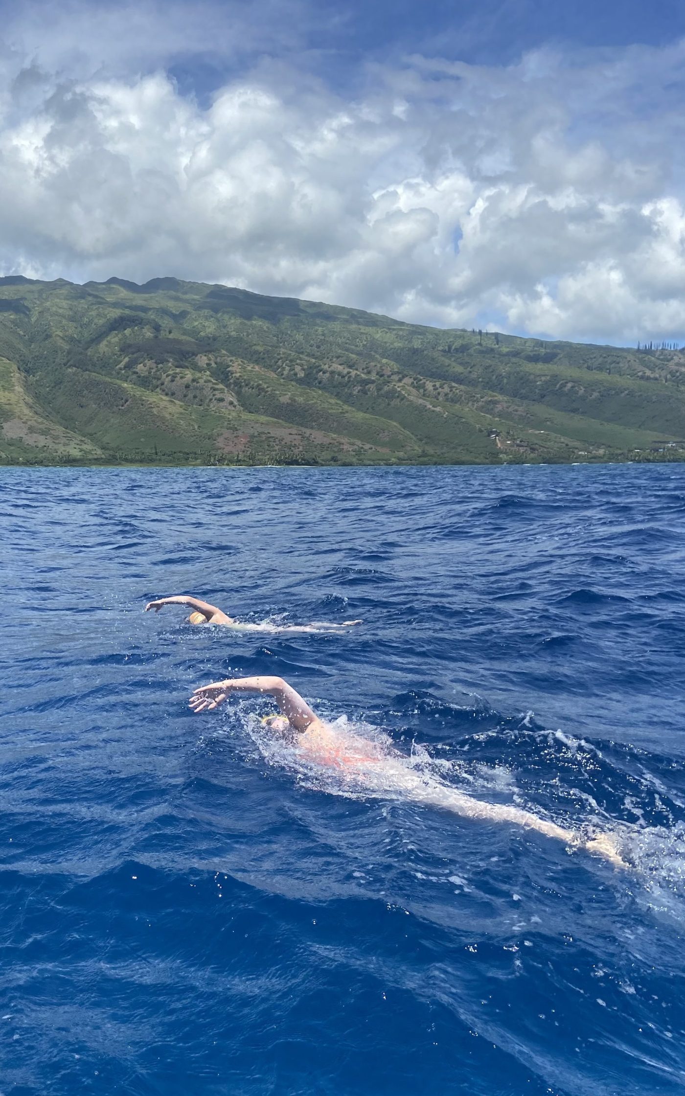 On September 17, 2022, I swam the Pailolo Channel from Namalu Bay, Maui to Puko’o, Moloka’i with my friend, Abby Bergman. Abby and I met just last year, but we became close friends quickly as we shivered together swimming skins through the winter in San Francisco. The dynamic of our friendship is simple; Abby suggests a wild plan, usually swimming related, and I say yes before knowing any of the details. As we got closer to our Maui trip, I wasn’t surprised when my phone vibrated with a text from Abby – “So, I have an idea…”