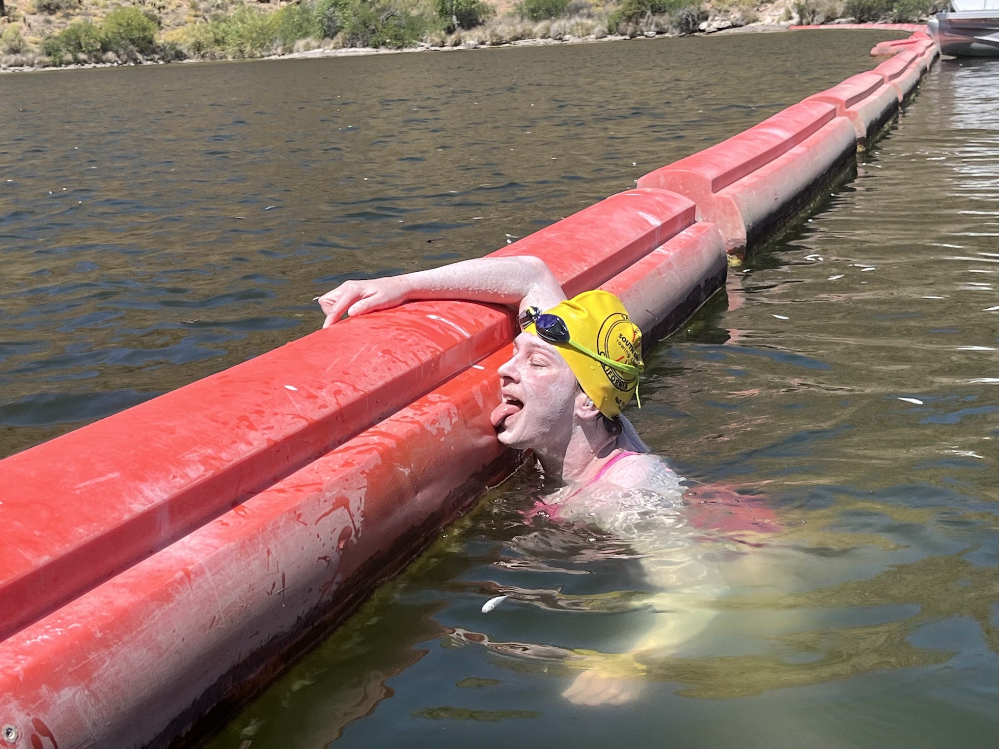 After returning to the Marina, I realized that I didn’t have the keys to our room and I had ALL of our gear. Deedee and Christine were on a different pontoon boat and I had no way of knowing when they would get back to the Marina. Finnoula saw me wandering around in the heat carrying multiple heavy bags, and I must have looked terrible because she gave me her towel to protect me from the sun. Honestly, wandering around in the heat felt more challenging than swimming Apache! Thankfully, Jax was in her room and was happy to give me some cool water while I waited for Deedee and Christine to return.