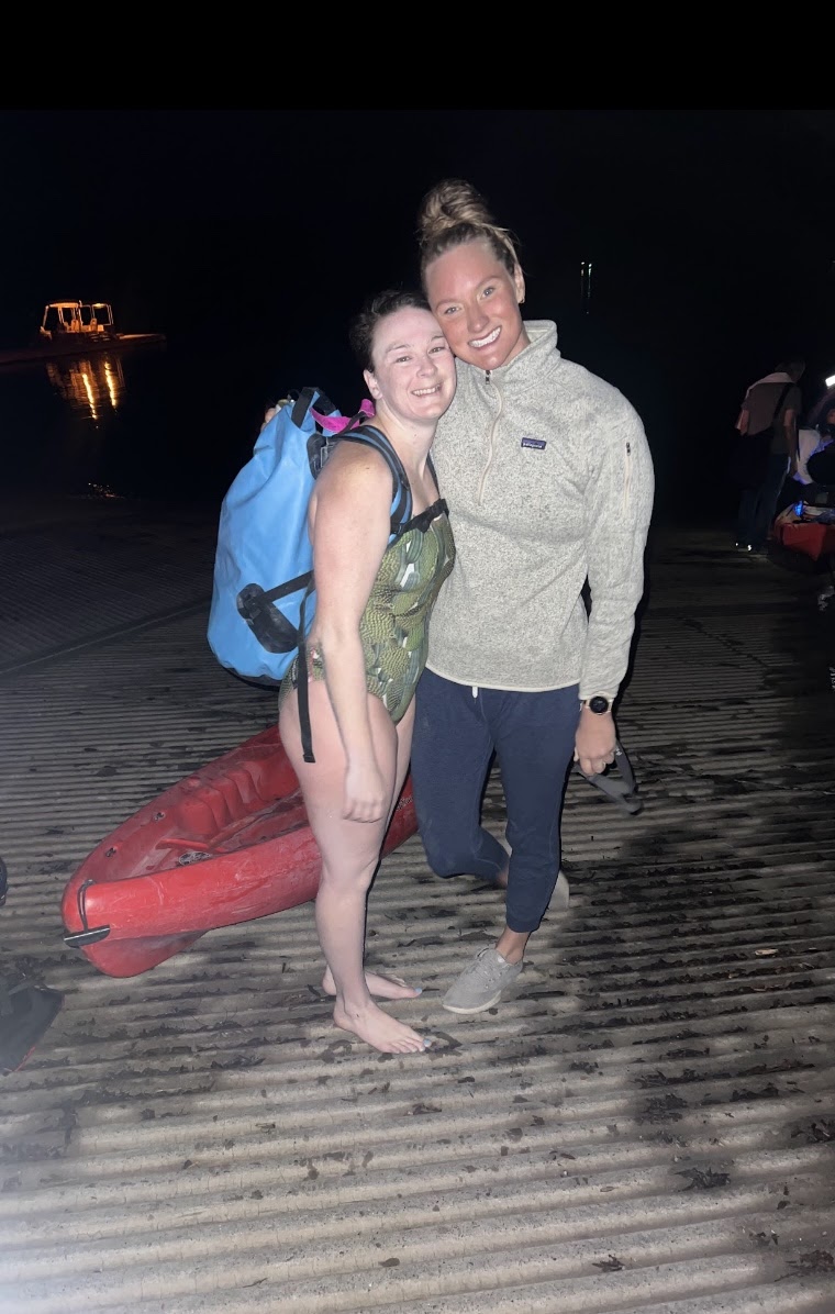 Darkness settled in on the way to the second triangle buoy. As we rounded that buoy and began the final leg of the swim. I flipped onto my back to look at the stars. I was tracking well with Deedee and spent some time intentionally swimming away and towards her kayak to train my depth perception in the dark. I was feeling sentimental about SCAR ending and stopped pretty frequently during this leg of the swim. When I said hello to a kayaker that ended up being Jax, I realized I should probably stop stargazing and get moving.