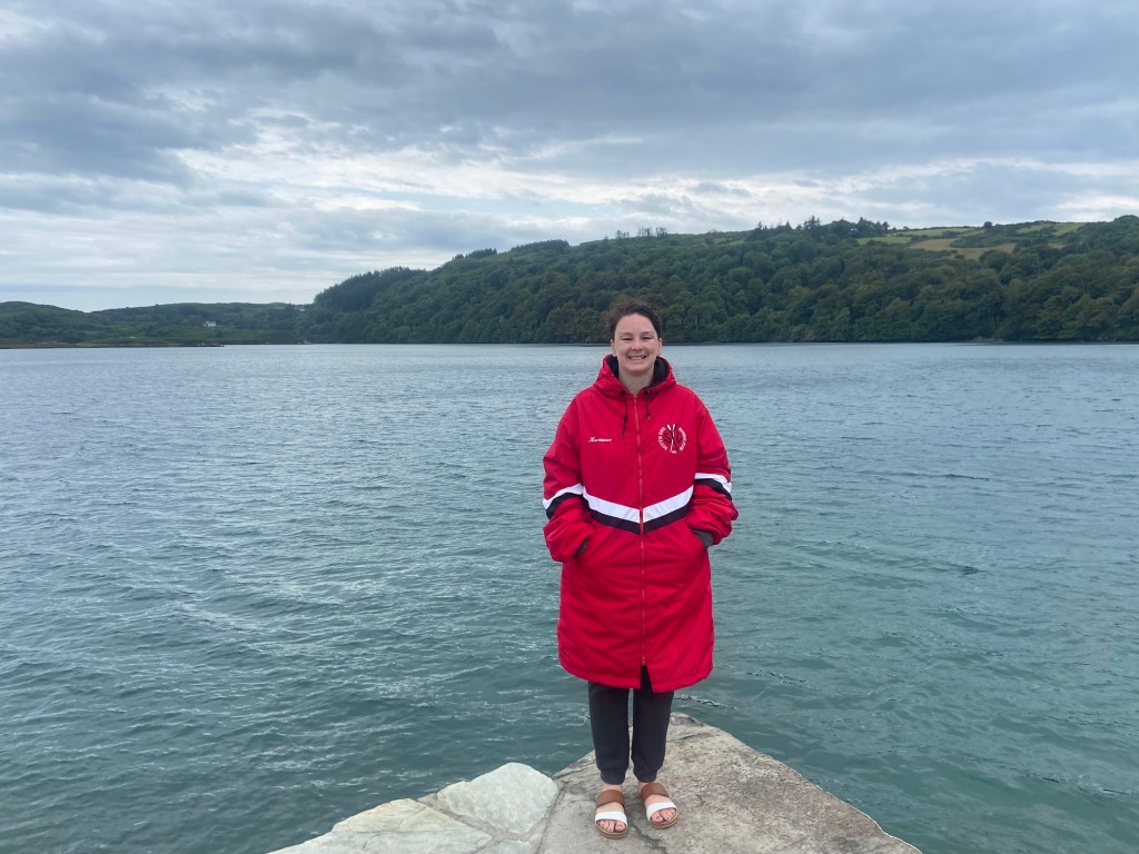 The conditions on the lake were amazing, but I was having a difficult time keeping up with my pod. When I got to the mouth of the sea, the temperature dropped significantly and I was surprised to see my friends waiting for me in this cold patch of water! On the way back, I got stung in the bicep by a blue jellyfish. I swam over numerous different types of jellyfish in the lough and was surprised to only be stung once.