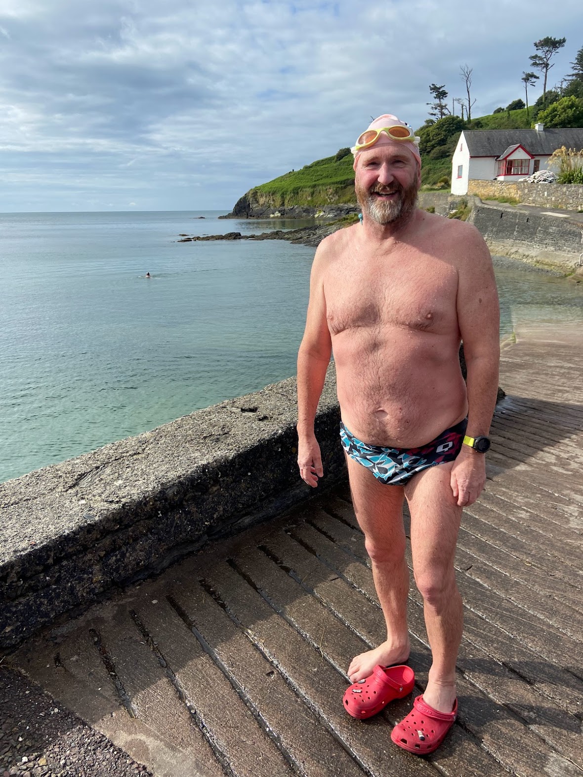 Near corned 4, I ran into Linda Clarke, Liz Fry, and Courtney Paulk. After a short discussion about whether we should explore up the creek, we decided to swim together back towards the yellow buoys. We crabbed our way from buoy to buoy until we were back at Corner 2. For our efforts, we were rewarded with an exceptionally fun body surfing experience back towards the slipway. I spent the afternoon walking around downtown Kinsale with Kerry, Asha, and Susan McKay. We had a special lunch for Sue, who was leaving CDW a bit early to attempt the English Channel! If successful, this swim would be the third in her Triple Crown. (Spoiler: She did amazing!).