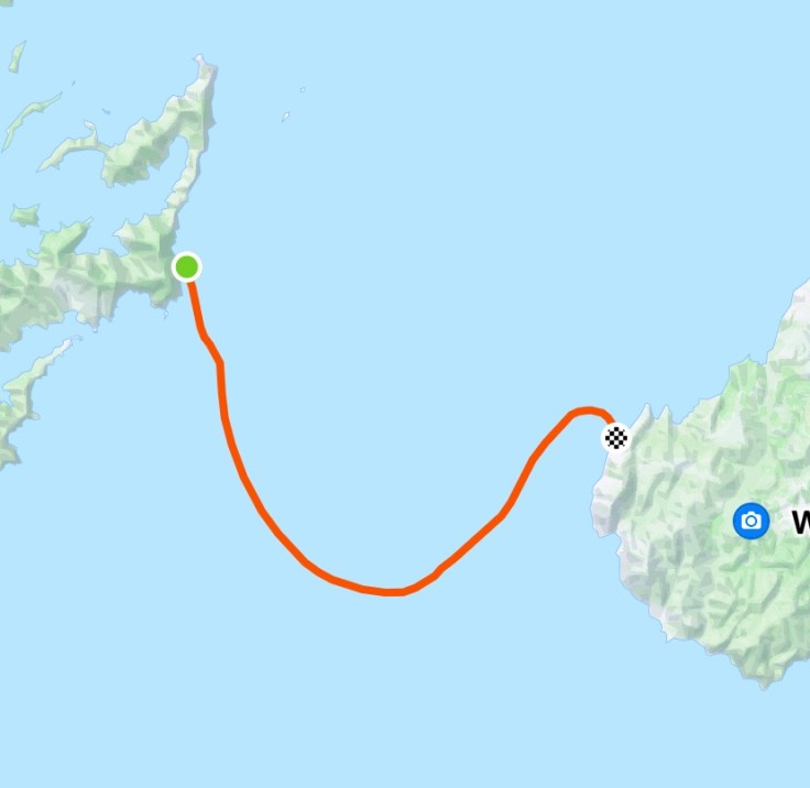 On February 6th, 2025, I had the absolute pleasure of swimming the Cook Strait (Te Moana-o-Raukawa in Māori). This dynamic body of water flows between the North and South Islands of New Zealand, connecting the Tasman Sea and the South Pacific Ocean. It is known for having unpredictable currents, cold water, and lots of marine life. The official swim route is between Arapaoa Island on the South Island and Cape Terawhiti on the North Island, and can be swum in either direction. The strait is 14 miles across at its narrowest point, but my swim ended up being about 23 miles due to the currents.